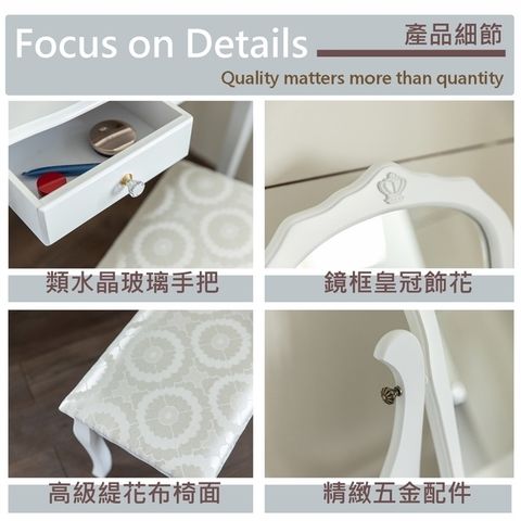 《AccessCo》新古典法式公主風水晶化妝桌椅組 純潔白
